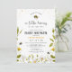 loral Yellow Gender Neutral Honey Bee Chá de fraldas Convite para apresentação de chá de fraldas neutro do gênero, com várias flores silvestres amarelas e abelhas aquáticas. Este pouco de mel está no caminho do convite para chás de fraldas também apresenta algum texto não editável.