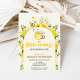 Amarelo Floral Nosso primeiro aniversario de Abelhas de Mel Convite Querido Mel doce ou convite de aniversário com algumas flores amarelas brilhantes, ilustração de abelha de mel e um arco. A parte de trás apresenta um padrão castanho e amarelo listrado. Este convite de aniversário de abelhas pode ser usado para qualquer idade.
