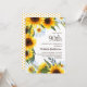 Girassóis amarelos e castanhos russos e margaridas brancas com lindas folhas verdes no convite de aniversário branco de 90 para mulheres. A parte traseira desta placa tem um padrão de bolinhas amarelo em branco. Entre em contato conosco para obter ajuda com a personalização ou para solicitar produtos correspondentes.