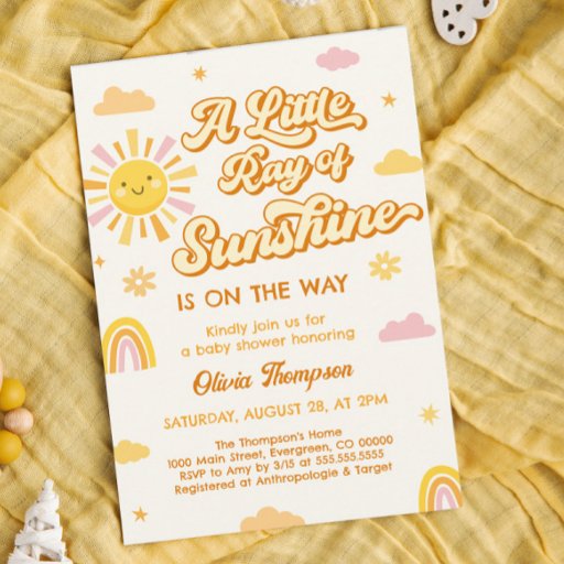 Convites Amarelo rosa Um pequeno raio de Chá de fraldas sol