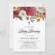 Convide a família e amigos para o seu evento com este convite de bênção de bebê, tanto em termos de capricho quanto de botânica. Apresenta amarilis branco, vermelho, roxo, pincel e laranja, peônias, mães, ranúculo e crisântemo com um padrão floral correspondente. As cores são perfeitas para o outono e batismos de Natal. Personalize adicionando eventos, nomes, data, hora, local e outros detalhes.