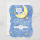 Em um formato recortado vertical em forma de colchete de 5" x 7", este é um belo convite colorido d'água criado pela artista Audrey Jeanne Roberts, este conjunto de convites para chás de fraldas "AMA VOCÊ à lua e trás" e itens de decoração de festas de papel farão um chá de fraldas doce e alegre para chás de fraldas de menino, menina ou de sexo neutro. A expressão perfeita do poder do amor de uma mãe por seu bebê nascer em breve! Um fundo azul de lavagem de aquarelas com pinceladas texturais modernas é sobreposto por um campo de estrelas ouros e uma lua crescente com um bebê rapado sobre ele, fralda para cima! Um quadro em forma de colchete de estilo de tipografia mantém o texto e dentro do convite um texto com letra escrita à mão lê "Você é convidado para um chá de fraldas em honra de". Os detalhes do convite contêm dentro a faixa branca, com dia, data e hora. As informações de sua parte são facilmente alteradas usando os campos de modelo simples fornecidos. Se você precisar de alguma assistência ou precisar de outros produtos projetados para combinar conosco! Direitos autorais, todos os direitos reservados.