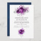 Rosas roxas de ameixa escura e pontes folíadas tropicais com brilho prateado convidadas com marinho azul de lavagem a aquarela.