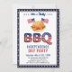 American Flag Red White Blue 4th de JULY CHURRASCO Card. Celebrar o "Dia da Independência" com este cartão de convite de festas "4 de JULHO" na moda e patriótico. Todos os textos estão pré-organizados para que você personalize fácil e rapidamente com seus próprios detalhes.