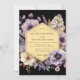 This design features a dramatic and elegant aesthetic with moody botanicals. A sophisticated palette of deep amethyst, soft lavender, and creamy ivory blossoms contrasts beautifully against a dark background. Delicate anemones and lilac clusters are highlighted by a touch of shimmering gold, creating a luxurious and romantic atmosphere.