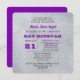 Estes convites modernos de chic, glam são perfeitos para qualquer celebração especial de aniversário. Prata brilhante com pop de ametista roxo, cada linha de texto é perfeitamente personalizável para dizer exatamente o que você quer! Disponível em vários tamanhos e formas.