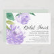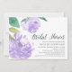 O chá de panela gráfico apresenta ilustrações de flor de pedras de aquarela em violeta clara, realçada com folhas verdes escorridas. Personalize com os detalhes do seu chá de panela alinhados à direita. Cartões à volta de verde pastel sólido.