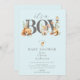 Apresentando o nosso adorável... é um convite de chá de fraldas de menino com um urso encantador, raposa e esquilo! Este design encantador captura a essência de uma celebração temática da floresta, perfeita para acolher um novo pacote de alegria. A ilustração lúdica mostra o urso, a raposa e o esquilo em um ambiente caprichoso, adicionando um toque de beleza ao seu evento especial. Com suas cores vibrantes e atenção aos detalhes, este convite certamente impressionará seus convidados e dará o tom para um chá de fraldas memorável.