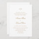 Convite clássico de casamento que apresenta o seu monograma no topo juntamente com os seus nomes num script elegante e os detalhes restantes numa fonte serif tradicional.