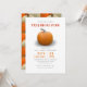 Convide seus convidados de amizade em estilo com este convite simples, mas elegante, de cartão plano. Este design apresenta uma abóbora laranja com texto colorido em vermelho, laranja e cinza para todos os detalhes do seu partido personalizarem em um fundo branco. A parte de trás do convite tem um padrão de abóboras laranja e branca. Concebido pelo artista mundialmente famoso ©Tim Coffey.