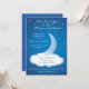 Um cartão de convite personalizado para chá de fraldas com lua e nuvem. Azul e branco podem ser adequados para o garoto e para a garota.
