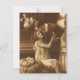 Cartão postal sepia vintage (ephemera) com uma imagem de amor e romance com um casal apaixonado aninhado junto a um piano.