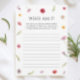 Torne o seu chá de panela memorável com o Amor Personalizado no Chá de panela Bloom Adivinhem quem Cartão de Jogo. Perfeito para o amor está no tema do chá de panela florescente, o amor está florescendo tema do chá de panela, ou o amor no tema do chá de panela florescente, é uma adição encantadora aos temas do chá de panela primavera, ideias do chá de panela de jardins, tema do chá de panela de flores, ideias do chá de panela de chá, festa do chá chá de panela ou tema do chá de panela de flor silvestre. Ideal para um chá de panela de festas de jardim!