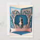 A design retrata um casal que dança romanticamente sob uma grande árvore com galhos entrelaçados e folhas intricadamente detalhadas. A árvore é elegantemente projetada em branco, destacando o belo casal desenhado e detalhado. O fundo azul escuro melhora o contraste entre a árvore e o casal, dando à design visual atração e profundidade. Esta design reflete a beleza da natureza e captura o momento emocional entre o casal, fazer-o perfeito como carta de casamento ou qualquer ocasião romântica.