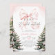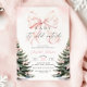 Arco rosa Inverno 'Baby It's Fold Outside' Convite para Chá de fraldas de Garota com pinheiros e detalhes do arco rosa.
