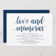Cartão de Chá de panela para caligrafia moderna (amor e mimosas). Convide os convidados com este Cartão de Convite perfeito. Adicione os detalhes do seu chá de panela ao texto Marinho azul correspondente.