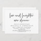 Anuncie a sua alegria para sempre em estilo com o nosso moderno tema de rusticidade design (Amor e Risos sobre janto) convite para comemorações de casamento. É ideal para casais que decidiram celebrar a noite antes do seu grande dia. Com seu design sofisticado, mas lúdico, este convite certamente define o tom de um evento inesquecível. A carta de convite apresenta um design verde, adicionando um toque de elegância rústica do eterno à sua celebração. Projetado por TeeshaDerrick