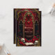 Amor eterno nas sombras da escuridão, no estilo gótico. O ponto focal é um arco gótico majestoso decorado com detalhes delicados de ouro e brilhando sobre um fundo vermelho profundo. As duas colunas elegantes que flanqueam o arco-íris adicionam um toque sublime ao design e enfatizam o design opulente. O coração balançando suavemente do arco-íris desenhar o olho e é enquadrado por um efeito sanguíneo que goteja,