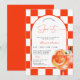 Apresentamos nosso convite de chá de panela com tema de Aperol Spritz em quadro xadrez laranja e branco com arco "Love At First Spritz" e ilustração de laranja cítrica em aquarela com fonte de texto moderna e minimalista! Defina o tom para uma celebração chic e refrescante com este convite elegante. Com um design moderno e minimalista com fonte de texto elegante e sotaques vibrantes de laranja cítrica em aquarela, este convite é perfeito para um chá de panela cheio de amor e risadas. Se você está organizando um brunch, uma festa de cocktails ou uma reunião ao ar livre, o tema Aperol Spritz adiciona um toque de sofisticação e diversão à ocasião. Vamos nos reunir para presentear a noiva com amor e celebrar seu casamento iminente com estilo!