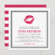 Convide os convidados a comemorar a noiva para estar em um chá lingerie com estes convites divertidos e flertos, mas modernos. O design quadrado chic apresenta um beijo de impressão rosa-magenta quente, uma borda preta nítida, e seus detalhes de evento em tons de serifa modernos, preto e rosa quente. A placa se reverte para amplas faixas de fúcsia e brancas.