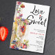 Champanhe Moderno Elegante e Strawberry Boho Blush Pink Summer Shower Convite com caligrafia "Love is Sweet"