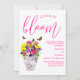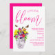 O amor está florescendo! Coleção de casamentos florais vibrantes com um buquê num vaso de mármore rodeado por borboletas e acompanhado por tipografia de guião fuchsia.