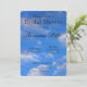 Uma coleção de casamento simples e impressionante que pode ser usada para misturar e combinar para criar seu evento perfeito. A imagem principal é um céu azul brilhante de manhã, com nuvens brancas espertas flutuando. Um chá de panela que diz, "Por favor, junte-se a nós em um chá de panela em homenagem a NAME on DATE, LOCATION. Alojado por NOME Por favor, RSVP por DATA.