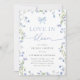 Celebre a noiva a ser com este elegante chá de panela "Amor em Bloom". Apresentando um delicado design de flor silvestre de aquarela em tons azuis suaves, este convite expele encanto e sofisticação. Um arco azul-escuro e uma tipografia de script graciosa adicionam um toque romântico, fazer-o a escolha perfeita para uma festa de jardim, primavera ou chá de panela com tema floral.