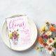 O amor está florescendo! Coleção de casamentos florais vibrantes com um buquê num vaso de mármore rodeado por borboletas e acompanhado por tipografia de guião fuchsia.