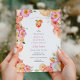 Amor no início da corrida. Este chá de panela temático laranja divertido apresenta uma borda de aquarela de flores rosa brilhantes, laranjas e verde. Personalize com suas informações ou clique em "Clique para personalizar mais" para editar estilos de fonte, tamanho e cores.