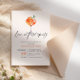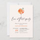Chá de panela de caligrafia elegante e convite ousado de Aperol Spritz com padrão de fruta laranja no verso.