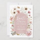A design apresenta uma exibição intrincada de flores silvestres boho, cuidadosamente curadas em tons suaves, moídos, de rosa poeirento, bege e mostarda.