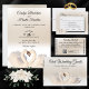 Os elegantes cisnes de amor estão representados neste lindo design personalizado com sotaques brancos e creme. Os cisnes são graciosos e acasalam para a vida, fazer-os símbolos românticos para o teu casamento.