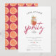 Este divertido chá de panela de verão tem um tema "Love at First Spritz" com sotaques cítricos. A ilustração frontal é uma projeção aquosa de Aperol com cobertura de hibisco e fruta. O verso é um padrão de fatia laranja de cor d'água correspondente com uma cor pantone do ano viva magenta de fundo. É divertido e caprichoso, perfeito para chás de panela de coquetéis de verão.
