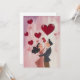 Uma ilustração encantadora e animada de um casal perdido num momento de alegria e afeto, cercado por corações vermelhos vibrantes flutuando contra um fundo rosa suave. O casal, vestido de vintage, olha uns para os outros com expressões de amor e felicidade, capturando a essência química do romance.