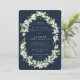 Uma recepção escura de marinhos apenas convite para o casamento, com morangos pintados manualmente e caules de eucalipto dispostos em uma bela estrutura botânica. Todo texto é totalmente editável e os pontos dispersos na frente e atrás podem ser excluídos antes de fazer o pedido, se preferir. Veja esta Coleção na minha loja para convites com opções de texto de alternativo, cores diferentes e para coordenar itens.