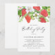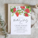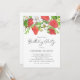 Convide familiares e amigos com este convite de aniversário de morango botânico. Apresenta a ilustração aquosa de morangos, folhas de flores brancas com um padrão de bagas correspondente. Este convite floral é perfeito para aniversários de primavera e verão. Personalize adicionando o nome, a data, a hora, o endereço e outros detalhes do evento do celebrante.