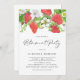 Convide convidados para o seu evento com este convite de festas de aposentadoria personalizável. Apresenta terra de cor-de-água de morangos, flores de morango e verde. Personalize adicionando seus detalhes. Este convite de festas de aposentadoria de morango é perfeito para eventos de verão.