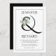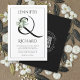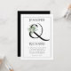 Esse convite sofisticado apresenta um ampersand na moda preto, complementado por um delicado ramo de eucalipto e flores brancas, todos colocados contra um pano de fundo branco. Os nomes do casal e os detalhes do casamento são exibidos elegantemente, com uma sutil fronteira negra moldando o design. A simplicidade desse convite exude beleza e, sem dúvida, estabelecerá o ambiente perfeito para o seu dia especial. Além disso, um código de QR no verso permite que os hóspedes façam o RSVP on-line convenientemente, adicionando um toque moderno a este convite para eternos.