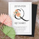 Amante elegante e peões de pêssego convite de casamento preto e branco. Ele inclui um elegante e preto com um buquê de pêssego e seus nomes em tipografia decorativa. Há uma borda fina preta ao redor. Simples, mas belo, este convite de casamento vai dar o tom para o seu casamento