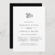 O convite para janto de ensaio de monograma elegante apresenta as suas iniciais unidas por um ampersand de script de caligrafia. Personalize com seu ensaio de cerimônia e jante ou comemore detalhes em letras negras nítidas. Uma escolha eterno em preto clássico e branco para jantas elegantes de ensaio em qualquer estação.
