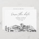Modern Anchorage preto e branco salve o convite de data. A frente mostra um desenho impressionante, dando o tom perfeito para o dia do seu casamento. Adicione sua própria foto ao verso e personalize o texto para torná-lo seu. Entre na ferramenta Zazzle design para personalizações adicionais do design.