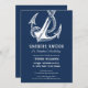 Celebrar em estilo com uma Âncora Branca Náutica num convite de aniversário Marinho. Este charmoso design apresenta uma âncora branca estilo vintage contra um fundo marinho profundo, criando um tema náutico clássico. Personalize os detalhes e faça uma apresentação com este convite personalizável que define o tom perfeito para o evento.