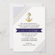 Dourada âncora marinho, convite para casamento náutico de stripes. Este elegante e moderno design de casamento de praia apresenta faixas diagonais em azul marinho e ouro que cobrir os dois cantos e uma âncora dourada.