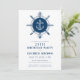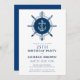 Marinho azul e branco da âncora e do convite de aniversário personalizável do leme.