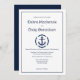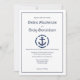 Um Convite Náutico para Casamento de Tema, desenhado com uma Âncora num Fundo Branco, com Marinho e texto. O texto da página inicial inclui: Nomes de Cheio, Data de Casamento, Hora e Local da Noiva e do Groom. O texto inverso inclui: Recepção, O Local e os Tempos de Recepção, em texto branco sobre um fundo de Marinho correspondente. Para personalizar, simplesmente insira seu texto em nosso modelo fácil, substituindo o exemplo.
