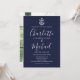 Com uma âncora de navio e nomes de estilo assinatura, este convite de casamento náutico elegante pode ser personalizado com suas informações em letras brancas elegantes em um fundo azul-marinho com a foto escolhida no verso. Criado por Thisisnotme©