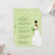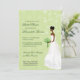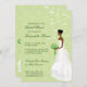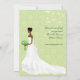 Uma noiva anda serenely abaixo do corredor neste chá de panela bonito. Enfrenta o texto personalizado na parte dianteira e andou através da página no reverso. O fundo é um teste padrão bonito do verde do damasco coberto com as videiras swirly florais, quando o buquê e os brincos da noiva combinarem o verde. Disponível em cores alternativas com produtos de harmonização e em opções para afiliações étnicas diferentes da noiva. Contacte por favor esta loja para personalizar este convite às cores nupciais específicas.