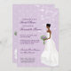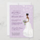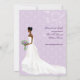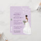 Uma noiva caminha serenamente pelo corredor neste chá de panela adorável. Ela encara o texto personalizado na frente e caminhou pela página ao contrário. O fundo é um bonito padrão roxo úmido coberto de videiras florais sujas, enquanto o buquê da noiva e os brincos correspondem ao rosa. Disponível em cores alternativas com produtos correspondentes e opções para diferentes etnias de noivas. Entre em contato com esta loja para personalizar este convite para cores predefinidas específicas.