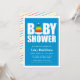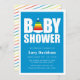 Este convite para Chás de fraldas apresenta uma tipografia ousada com anéis coloridos de brinquedos. As cores são azul, verde, amarelo, laranja e vermelho. Para obter informações sobre alterações de design personalizadas pelo designer independente, envie um email para paula@labellarue.com ANTES de personalizar ou fazer um pedido.